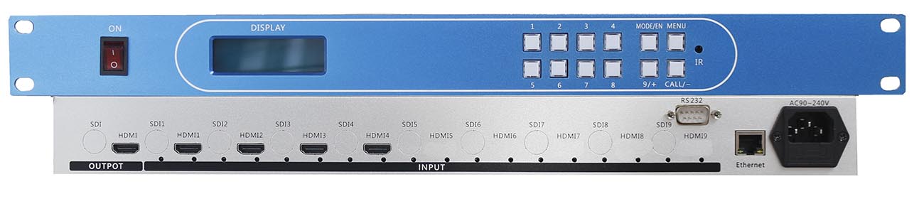 (10) 带RS232和以太网接口,支持电脑软件控制,用户可自任意拉伸,拖动窗口,可定制画面模式下载到设备中通过按键快速切换画面模式;